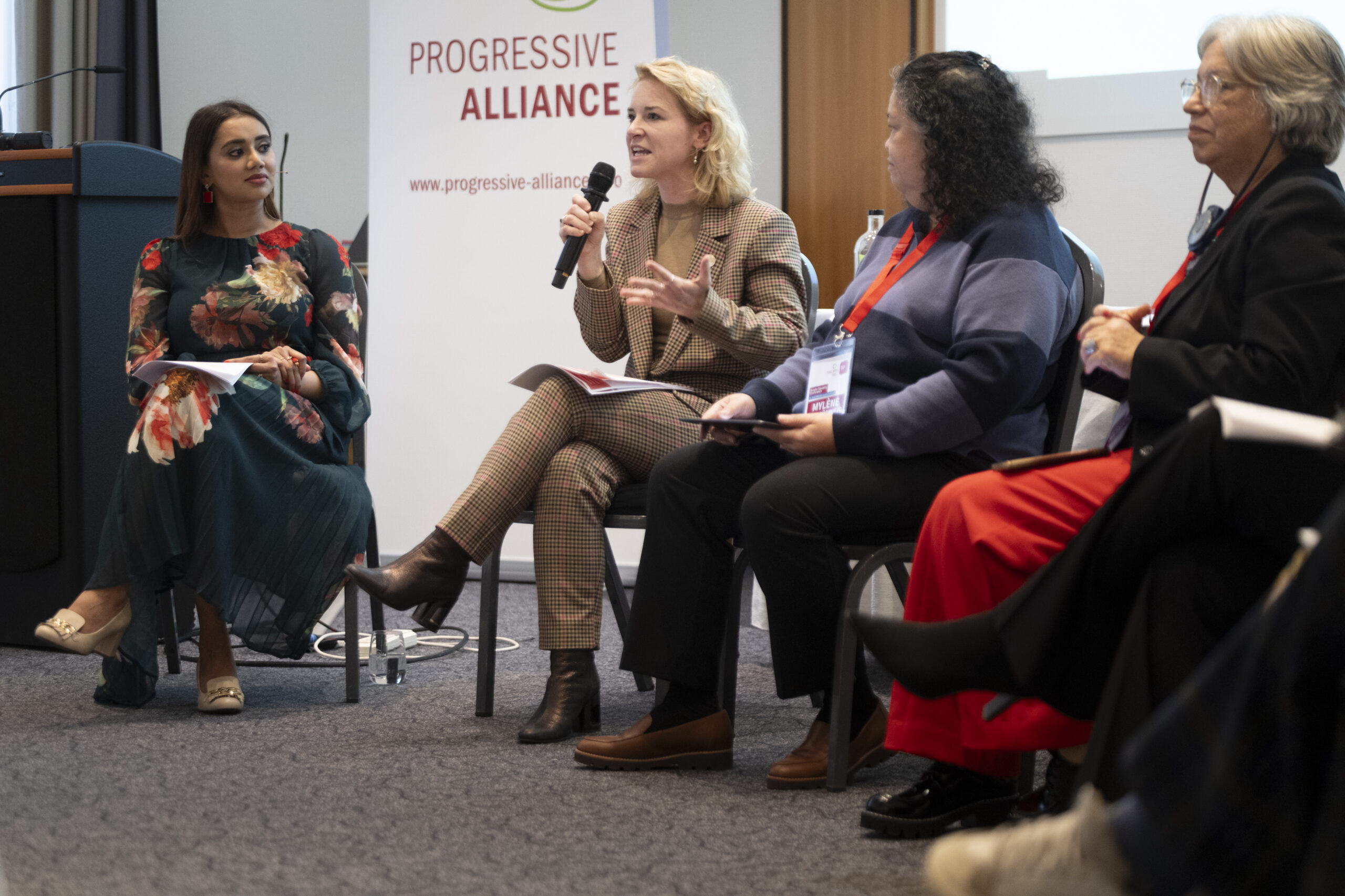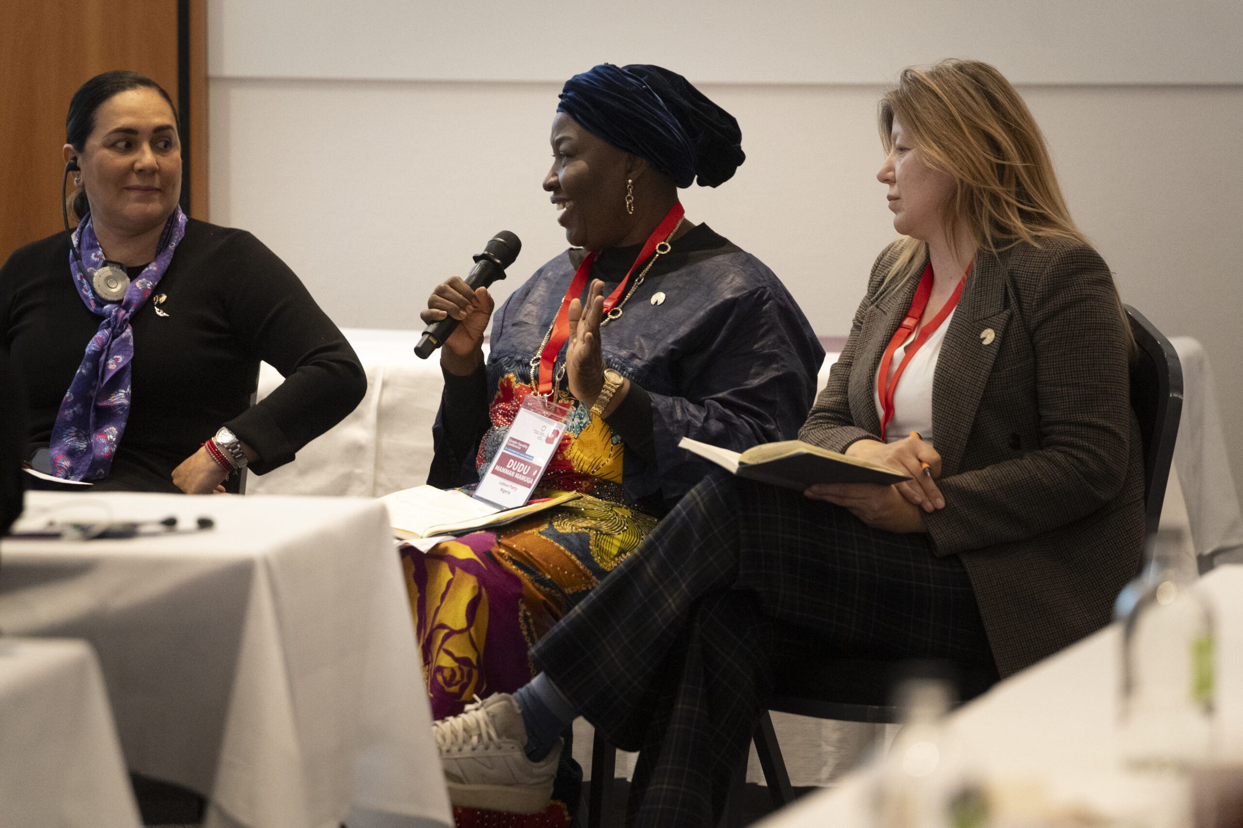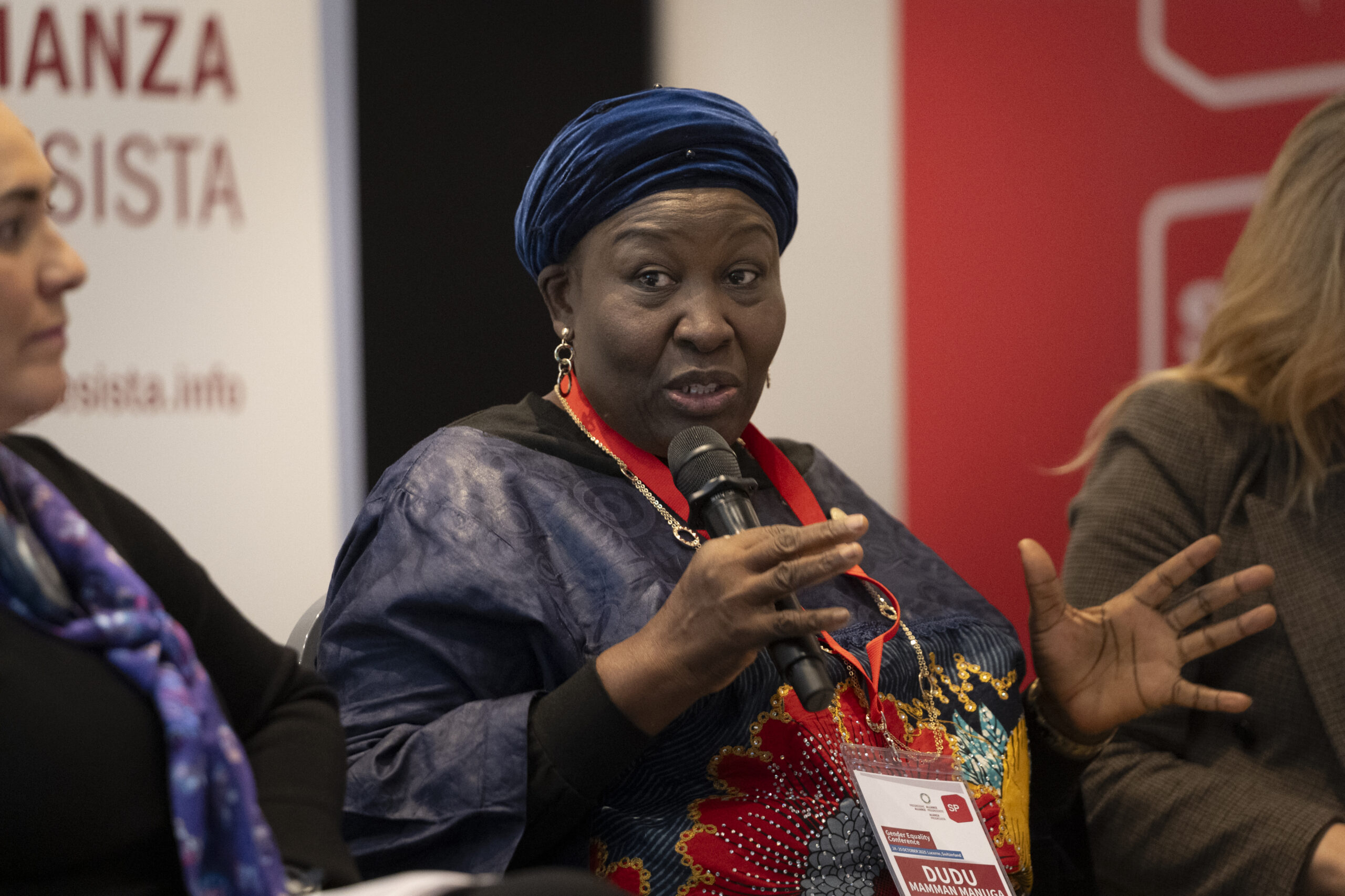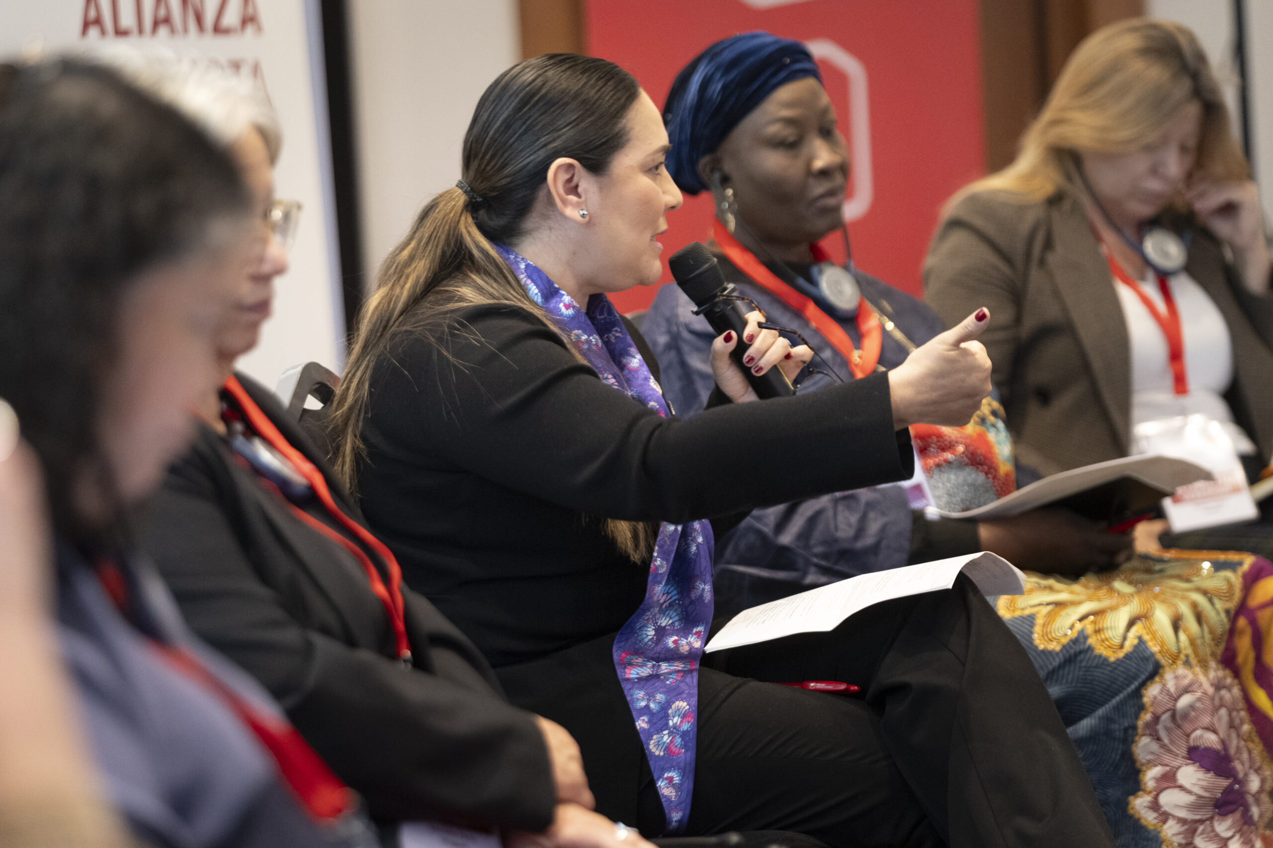 El primer panel abordó cómo el liderazgo feminista responde a la incertidumbre política y al avance de movimientos contrarios a los derechos. Desde distintas regiones se subrayó que la representación por sí sola no es suficiente: las mujeres necesitan seguridad, recursos y capacidad real de decisión para transformar las instituciones. La discusión vinculó las movilizaciones históricas con las luchas actuales por la justicia del cuidado, el trabajo digno y una participación política genuina.