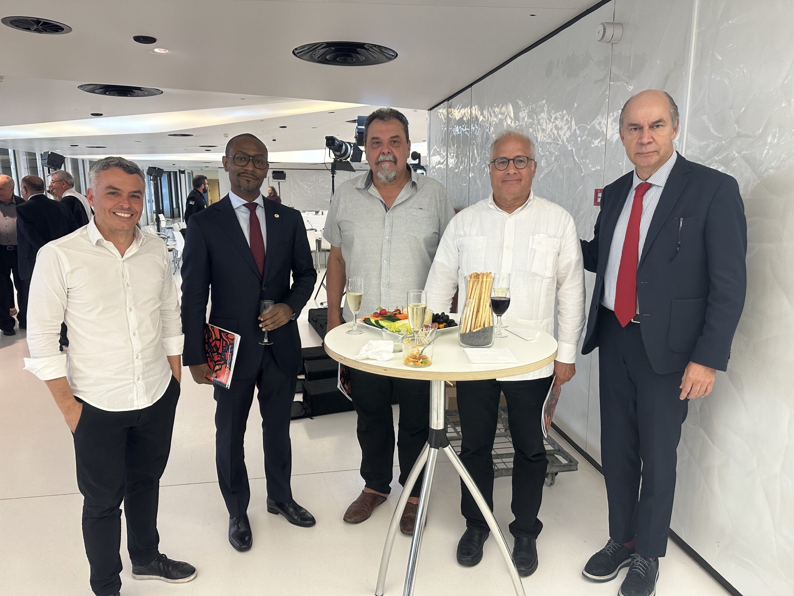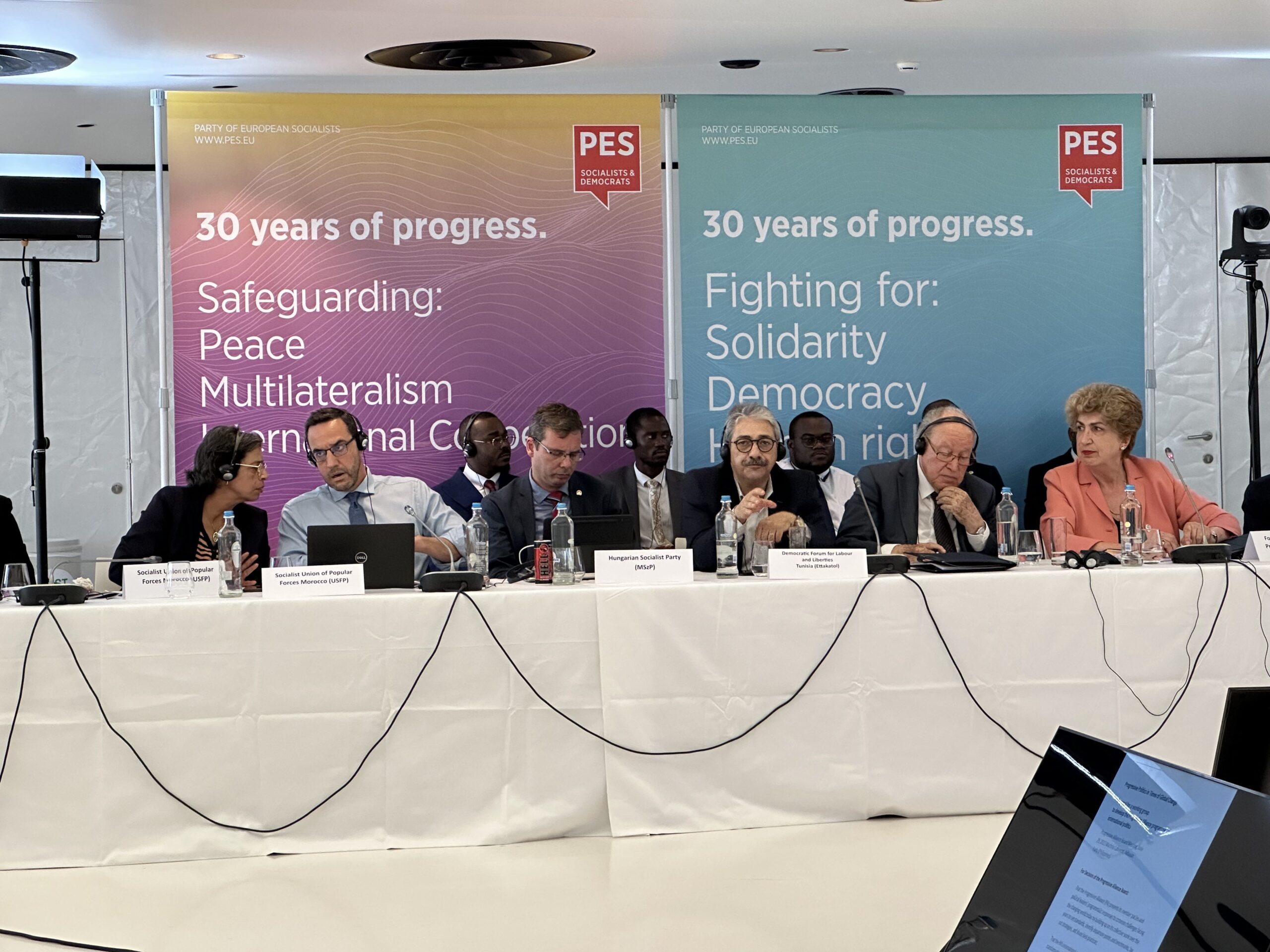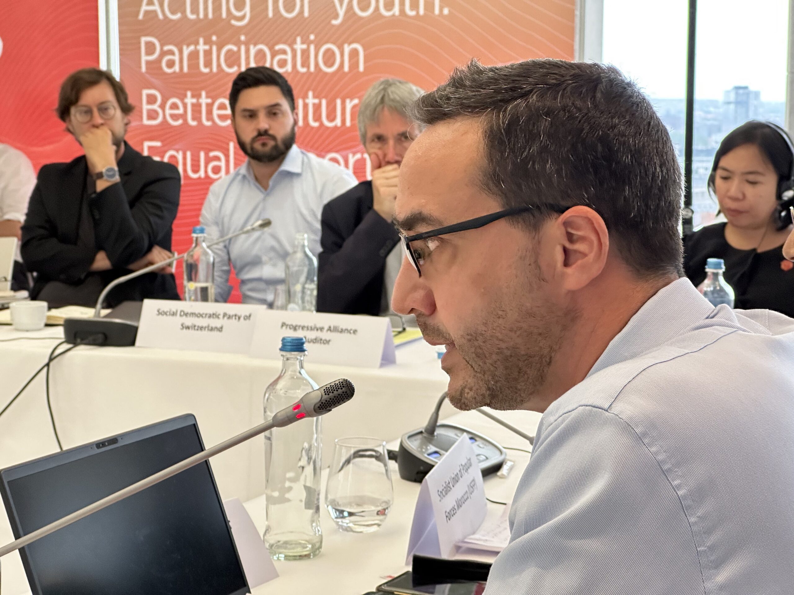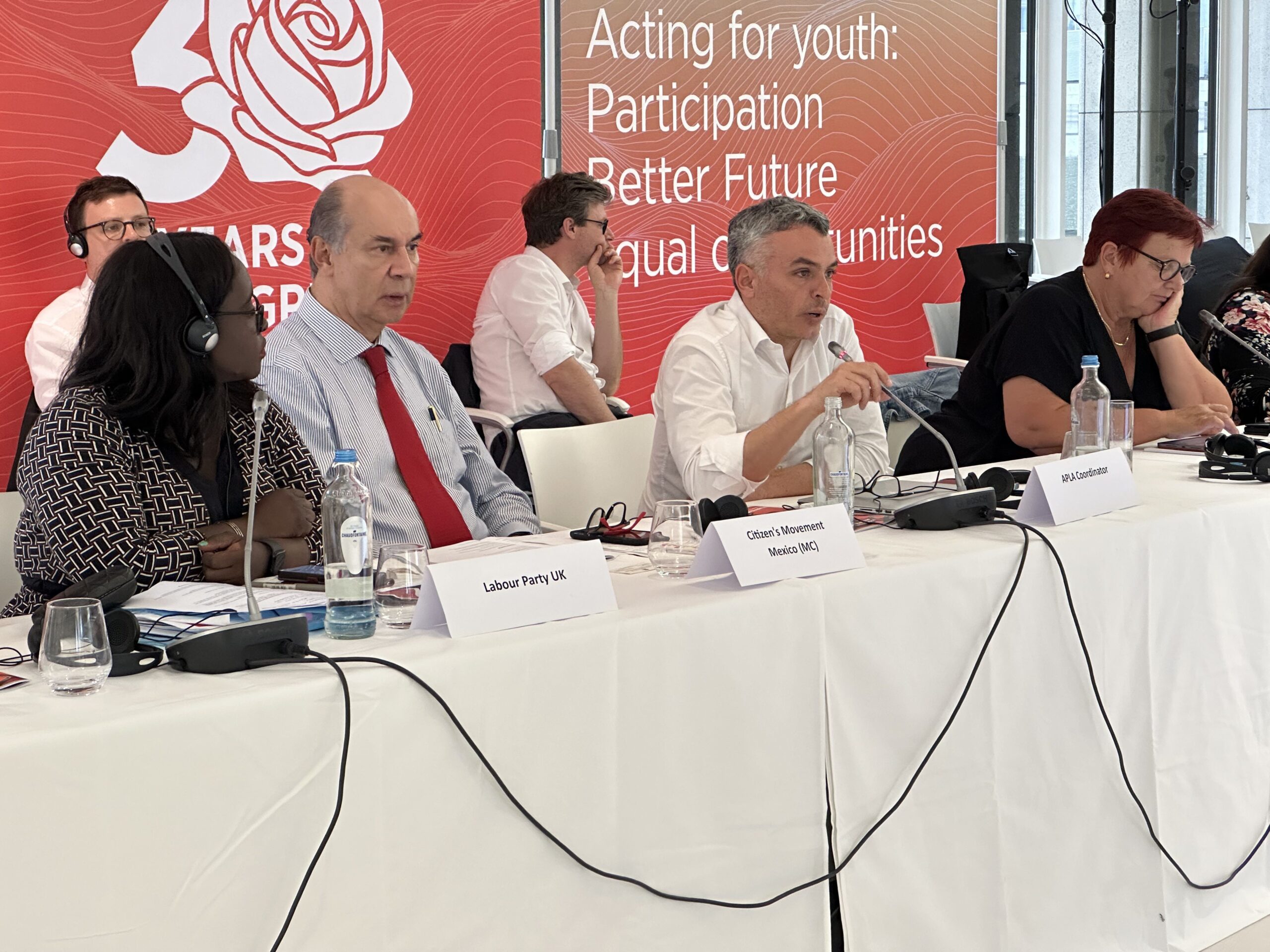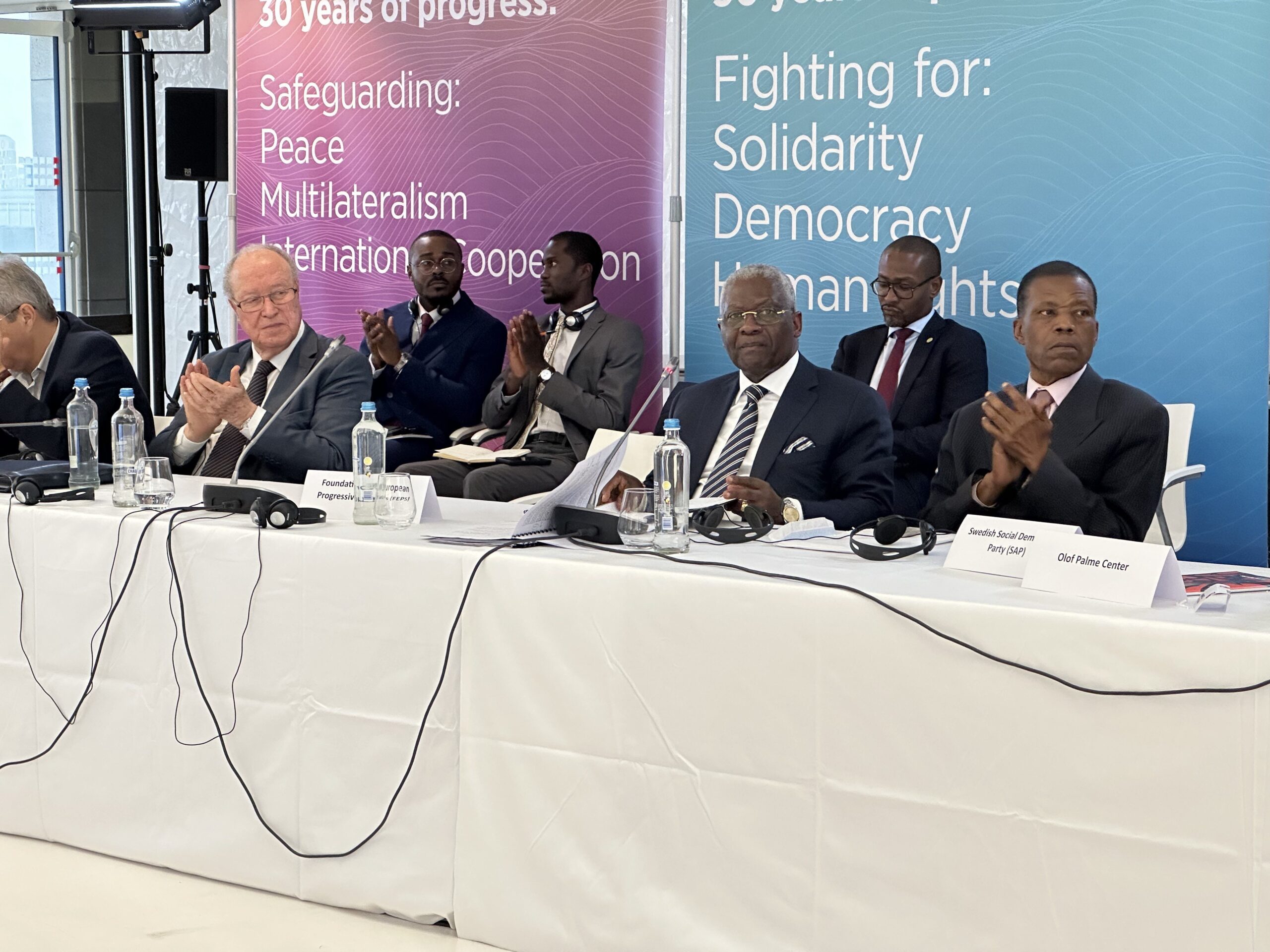 Los coordinadores regionales de AP Esteban Paulón (Las Américas), Marlon Cornelio (SocDem Asia/Pacífico), Bonaventure Mbaya (África Central), Mustapha Ben Jaâfar y Khelil Ezzaouia (Foro Socialdemócrata Árabe) informaron sobre el desarrollo de AP en sus respectivas regiones.